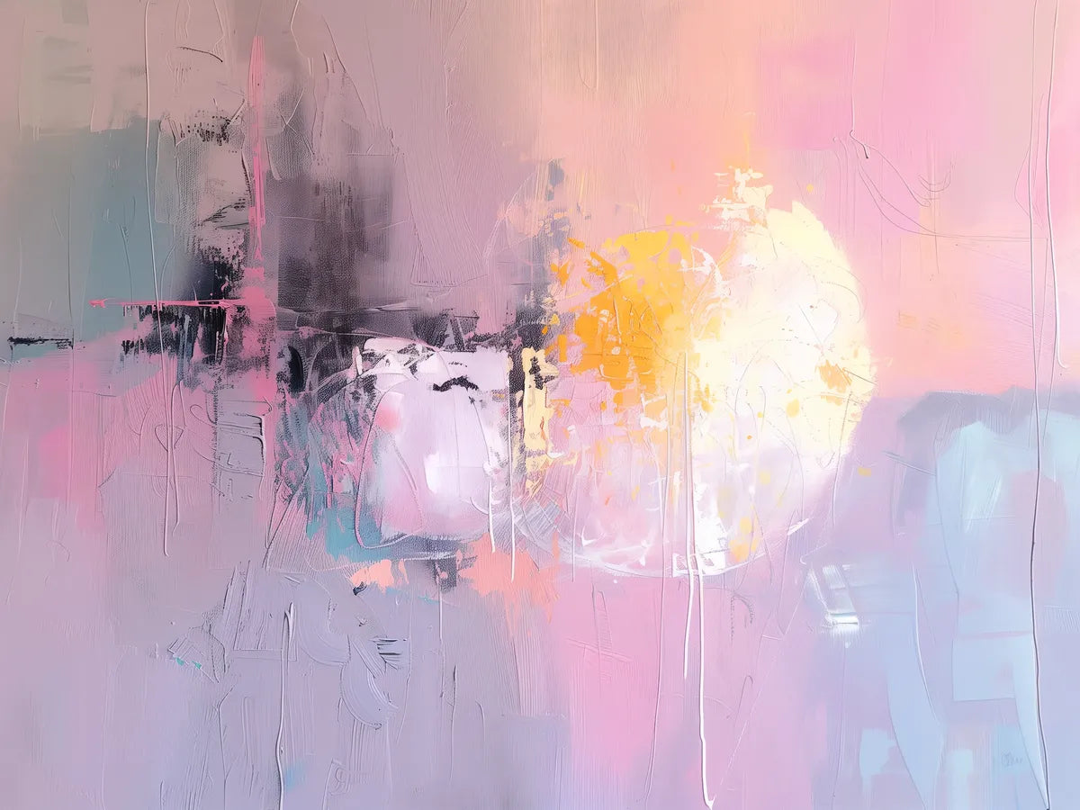 Dit prachtige kunstwerk vangt de essentie van een abstracte zonsondergang met zijn zachte pastelkleuren en dynamische penseelstreken. Het biedt een serene sfeer die perfect is voor gezellige interieurs, gebruik deze als een rustgevende toevoeging aan elke kamer in je huis.