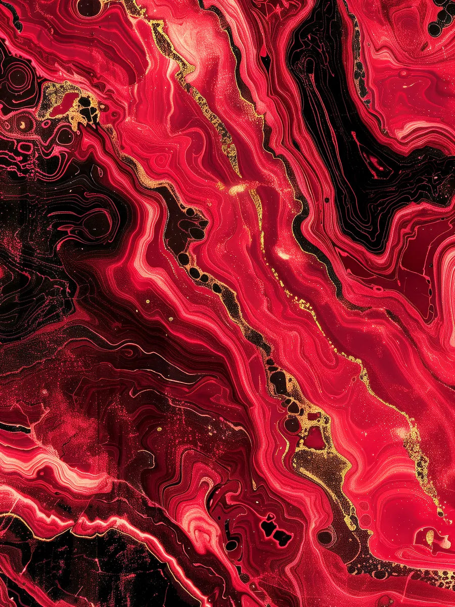 Dit kunstwerk toont een prachtig marmerpatroon, waar de dieprode en zwarte tinten samenkomen om een majestueuze uitstraling te creëren. De variaties in kleur en textuur zorgen voor een unieke diepte, waardoor het een aantrekkelijke toevoeging is aan elke muur. Dit is de perfecte keuze voor liefhebbers van modern design en krachtige kleuren.