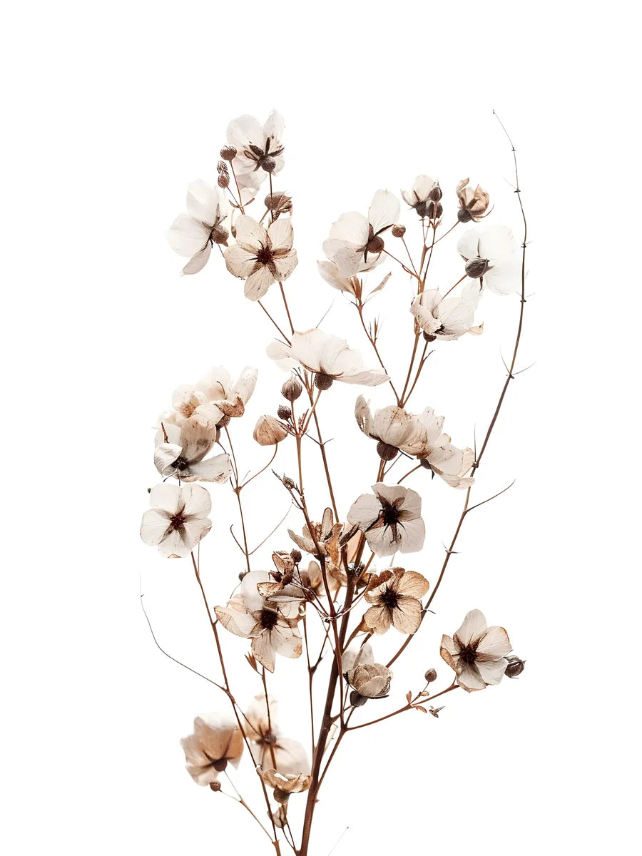 Deze delicate takken met droogbloemen voegen een natuurlijke charme toe aan je huis. De subtiele kleuren en de verfijnde vormen van de bloemen brengen een rustgevende sfeer in elke ruimte. Perfect voor het creëren van een rustiek of botanisch accent in jouw interieur.