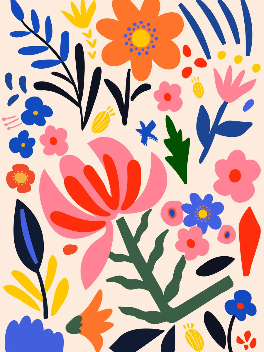 Of je nu een moderne woonkamer of een gezellige slaapkamer hebt, deze bloemenillustratie past in elke setting. De combinatie van felle kleuren met een speelse stijl maakt het een ideale toevoeging aan zowel minimalistische als eclectische interieurs.