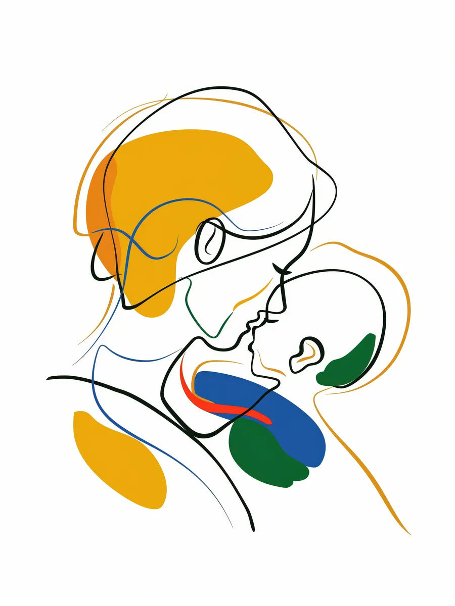 Deze prachtige lijntekening vangt de onvoorwaardelijke liefde tussen een moeder en haar kind. De zachte lijnen en speelse kleuren scheppen een gevoel van nabijheid en warmte, perfect voor iedere ruimte waarin liefde en verbondenheid gewenst zijn.