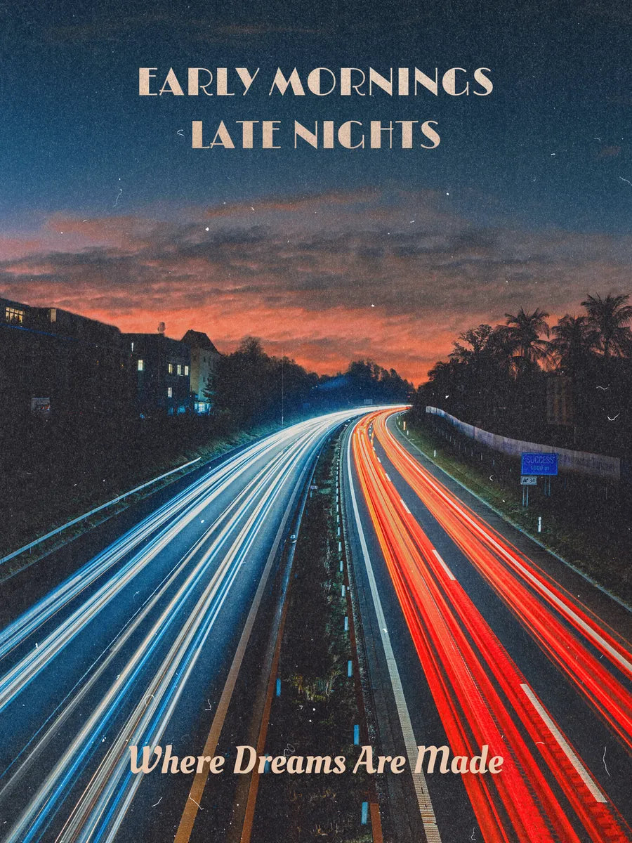 Dit kunstwerk vangt de levendige energie van de nachtelijke snelweg, met stralende lichten die de beweging van het verkeer benadrukken. De combinatie van rode en witte lichten creëert een prachtige dynamiek die het moderne leven en de snelheid van de stad weerspiegelt. Dit stuk brengt energie en beweging in elke ruimte.