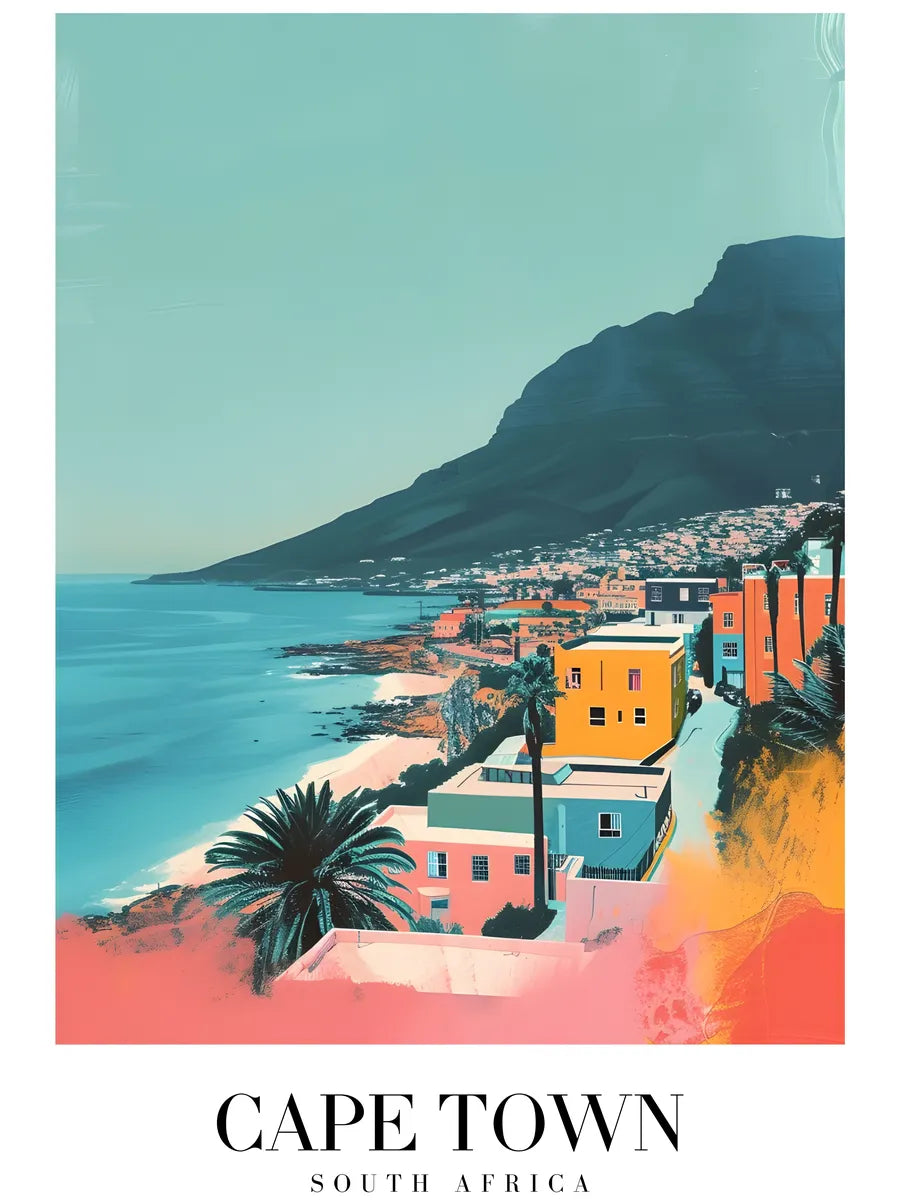Deze kunstprint is de ideale manier om een vleugje Zuid-Afrikaanse schoonheid aan je woonruimte toe te voegen. Of je het nu in de woonkamer, slaapkamer of kantoor hangt, het zal zeker een blikvanger zijn. Met zijn frisse kleuren en moderne uitstraling, voegt het een elegante touch toe aan elk interieur.
